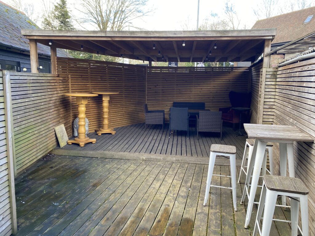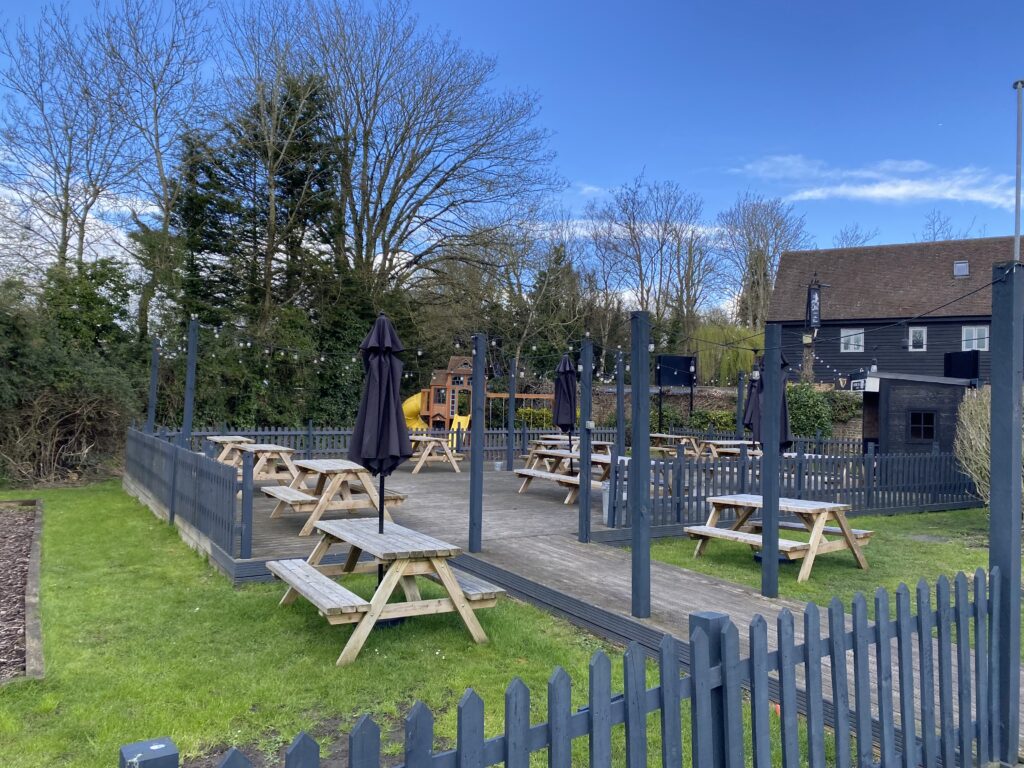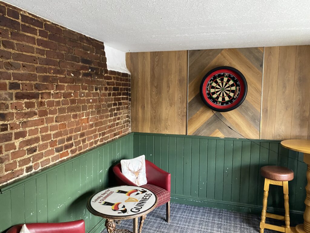 As you come in through the front door, the bar sits straight ahead, giving the space an easy, welcoming feel. To the left, there’s a cosy snug area with a fireplace, a great spot to sit back and relax. On the right-hand side, a corner alcove offers a bit more privacy, while a standing/drinking area runs alongside and leads through to a semi-covered outdoor seating space. To the left of the bar, there’s a raised section set up for darts with some seating, adding a bit of character and activity, and this also leads through to the toilets. Outside, there’s a car park with space for around 12 cars. The beer garden is a real highlight, with a large decked area that can seat over 60 people, plus extra seating around it. There’s also a children’s play area with a swing set, making it a great option for families. Overall, it’s a friendly, easy-flowing layout with a mix of cosy indoor spaces and plenty of outdoor seating to suit everything from a quiet drink to bigger gatherings.