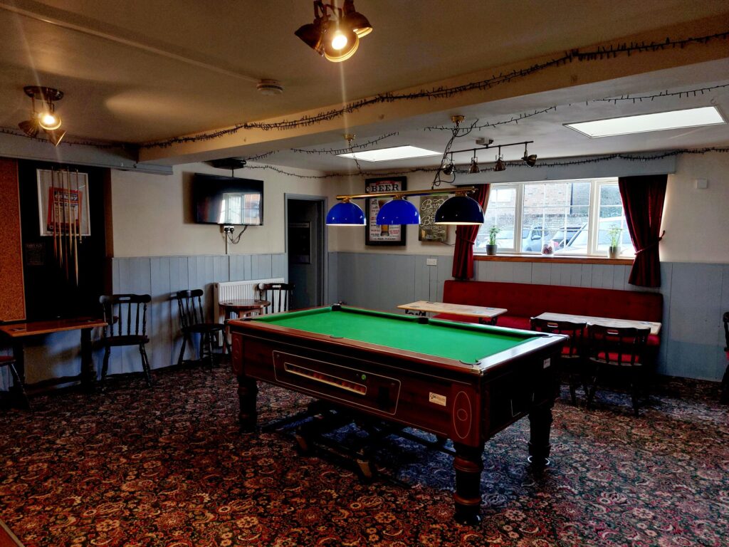 The main entrance to The Buckingham Arms sits proudly between two large bay windows, leading directly into the inviting main bar area. Here, guests are greeted by a beautiful Victorian-style servery, complemented by a mix of high and low-level seating that creates a warm and relaxed atmosphere. Convenient access to both ladies’ and gents’ facilities is available from this space. Heading past the bar to the right, and through the side entrance, you’ll find a spacious sports lounge at the rear of the pub. Designed for more lively gatherings, this area features a pool table, dartboard, juke box, and multiple TVs that regularly screen live sports. The lounge also offers a mix of fixed and casual seating, as well as separate access to additional ladies’ and shared gents’ facilities. Outside, the pub boasts a good-sized rear car park with space for around 12 vehicles, while the charming front courtyard terrace complete with bench seating and original railings offers an ideal al fresco spot.