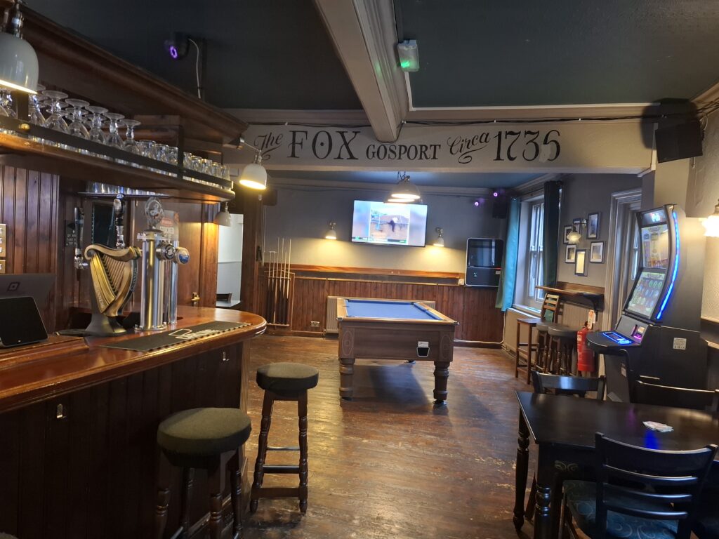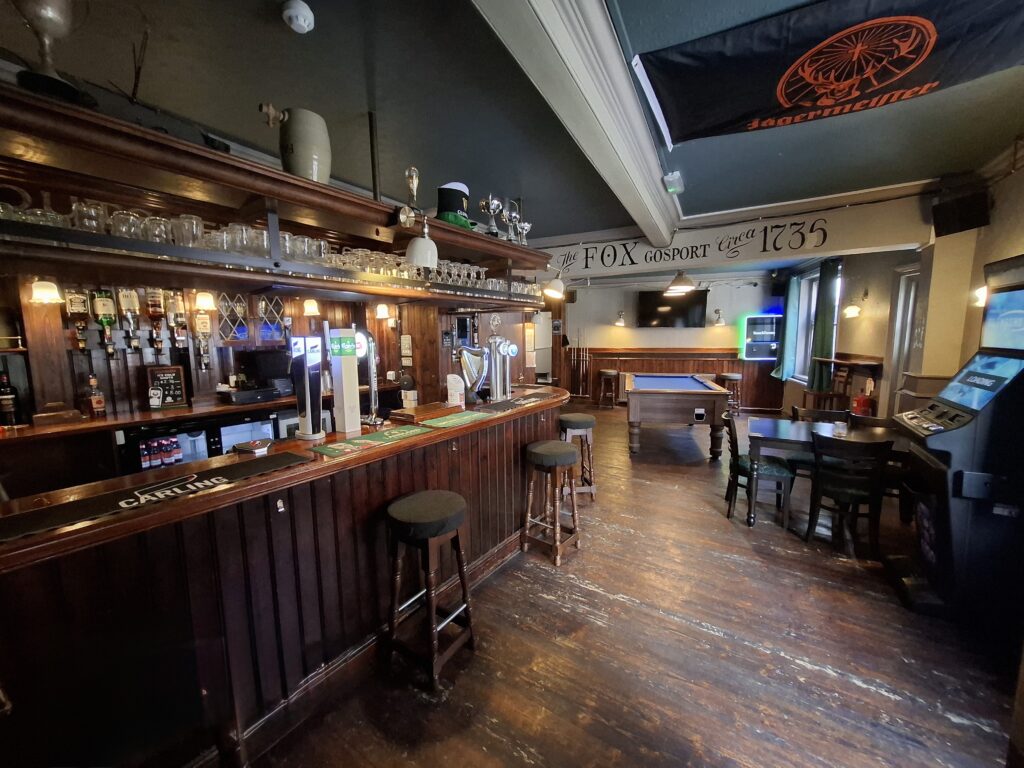 The Fox Inn is a traditional and attractive wet led pub based behind the busy high street of Gosport. It is situated adjacent to a densely populated residential area, surrounded by plenty of shops and businesses. The pub and high street are approximately 300 meters from the Gosport Espanade and the Marina which overlooks Portsmouth harbour Gunwharf Quays and the Solent. The pub is easily accessible via North Street and nearby main roads A32 and A27, with regular bus services to Portsmouth, Fareham, and surrounding areas, and close connections to the Gosport Ferry for travel across the harbour.