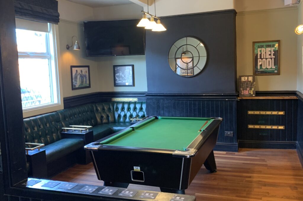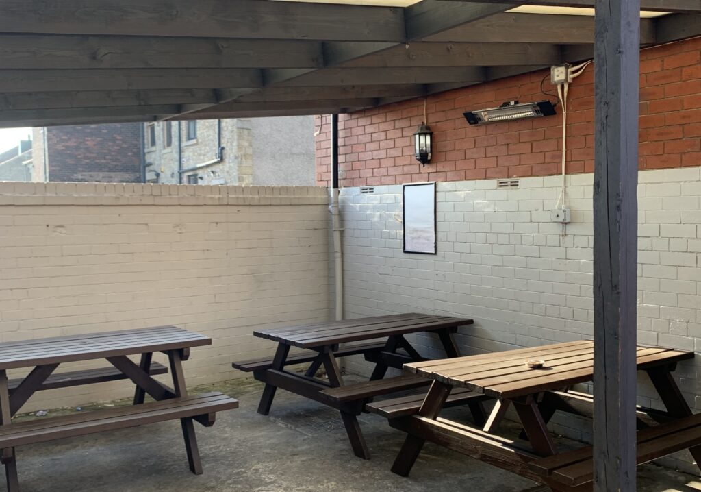 The pub boasts a bright, open-plan layout that creates a welcoming and spacious atmosphere throughout. On entering through the front door, the bar is positioned to the right, while the left-hand side features a dedicated pool area with fixed seating and a TV. Moving further into the venue, the space opens up to a comfortable mix of loose and fixed seating, complemented by additional TVs and a well-defined darts area, making it ideal for both casual visits and social gatherings. Towards the rear, a corridor provides access to the toilet facilities and a rear exit leading to the outdoor area. Outside, guests can enjoy four bench tables and a covered smoking shelter, offering a practical and inviting space for customers all year round.
