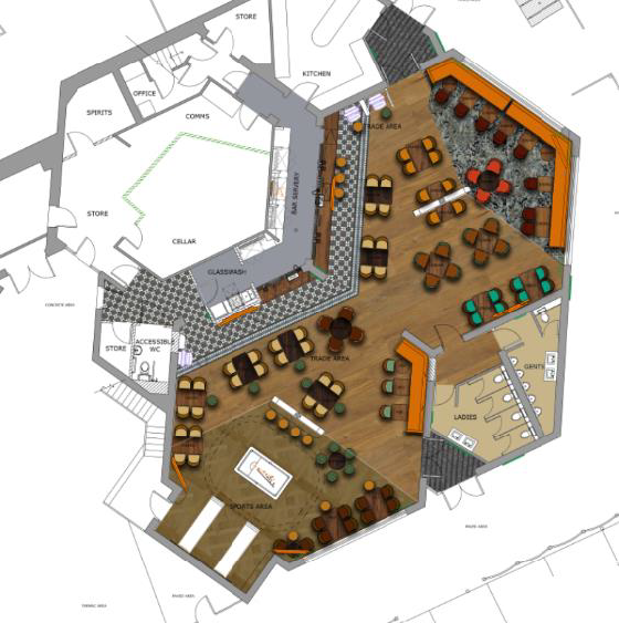 The pub is currently trading well and enjoys a loyal and supportive customer base. Following a significant £376,000 investment, there is now a real opportunity to take this established business and elevate it into a standout Proper Pub within the area. The refurbishment will reposition The Meadows as a vibrant, multi-zoned venue with a strong focus on sport, games, and community-led occasions, giving the incoming operator all the tools needed to drive sales and increase revenue. Internally, the pub will offer a welcoming lounge area with a mix of fixed and loose seating, including high poseur tables and more relaxed seating options to suit different occasions. The space has been carefully designed to create distinct trading zones, allowing customers to enjoy everything from casual drinks to live sport and entertainment. A dedicated sports area will feature multiple well-positioned screens alongside two darts boards and a pool table, creating a strong focal point for both live sport and competitive socialising.