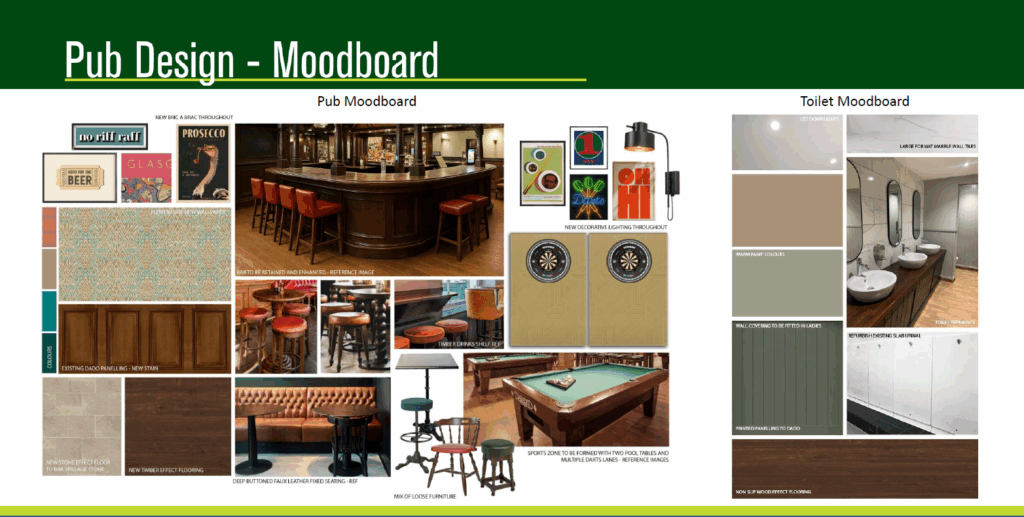 Admiral Taverns is set to undergo a full-scale refurbishment, breathing new life into the venue while preserving its character and charm. The project will encompass significant improvements to the main roof, public bar, lounge area, and customer toilets, enhancing both the functionality and overall experience for visitors. Externally, the building will benefit from a comprehensive roof repair, ensuring long-term structural integrity. The front elevation is also due for a fresh coat of paint, with new signage under consideration to boost visibility and street presence. Inside, the public bar will see a thoughtful transformation. A section of fixed seating will be removed and replaced with loose, flexible furniture, creating a more open and welcoming environment. The space will be fully redecorated, blending a sports theme with historical photographs of Glasgow, and showcasing repurposed memorabilia to honour the pub’s heritage. Existing fixed seating will be reupholstered, while new wooden flooring will be laid throughout to elevate the aesthetic. To enhance ambience and appeal, pendant lighting will be added to the windows, contributing to increased kerb appeal. The entertainment offering will be boosted with the addition of three darts lanes, each complete with scoring systems, alongside the installation of new decorative lighting throughout the bar area. The lounge area will also receive a refresh, including new decoration and the installation of double doors, providing improved access to the garden area, helping to create a more connected and versatile space. Attention is also being given to the toilet facilities, ensuring they are modern, comfortable, and fully upgraded. The ladies’ toilets will be completely refurbished, including the installation of new vanity units and washbasins, new flooring, a lowered ceiling, and LED lighting, which will also be extended to the rear access corridor. The gents’ toilets will be similarly upgraded, with the urinals reviewed, walls retiled, and a new ceiling fitted with LED downlighters. A new WC suite and two modern washbasins will be installed, complemented by new flooring throughout.