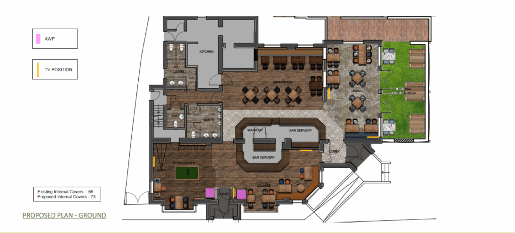 The upcoming refurbishment is designed to transform the pub into a vibrant, versatile destination with broad appeal. The reimagined bar area will cater to fans of pub games and live sports, offering an energetic and social atmosphere. In contrast, the lounge will provide a more relaxed setting, perfect for casual dining and drinks.